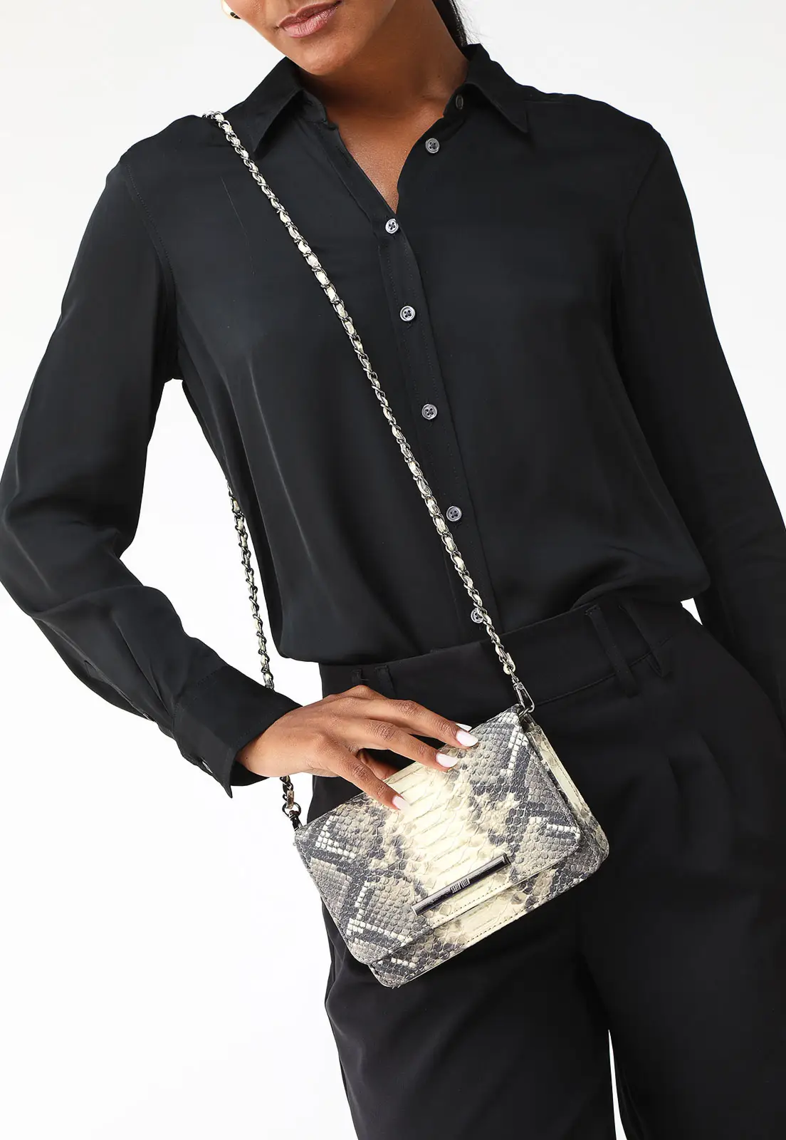 TOQUE FASHION: Clássica e atemporal, a textura cobra é a queridinha para compor um look despojado e cheio de estilo. Por ser um acabamento versátil, pode ser combinada com metalizados, estampas e aviamentos sem pesar no visual!