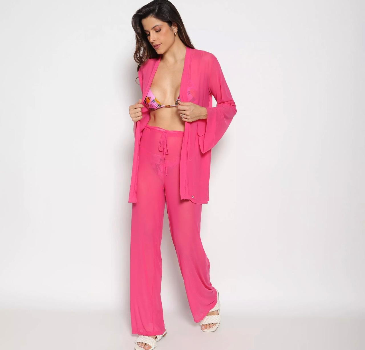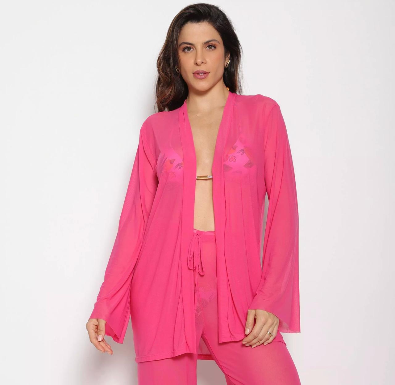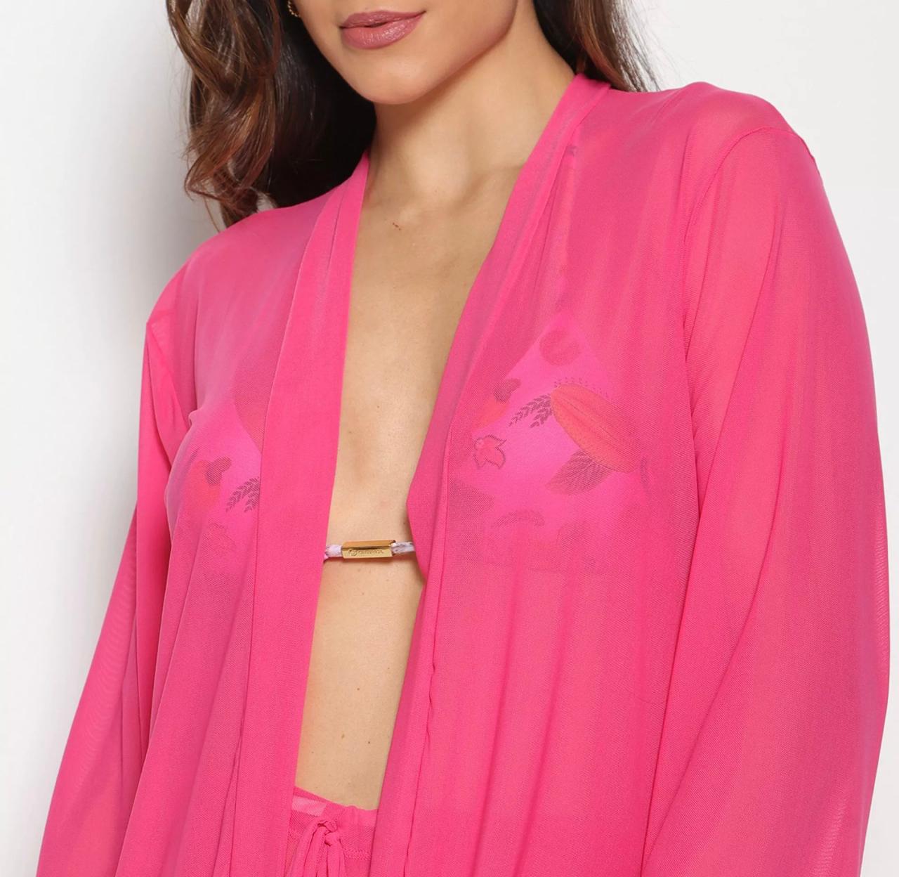Kimono na cor rosa neon.
