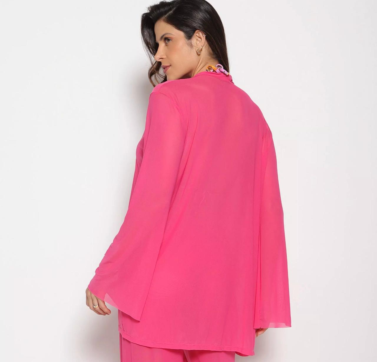 Cajubrasil – Kimono Curto Em Tule | Rosa Neon tam G