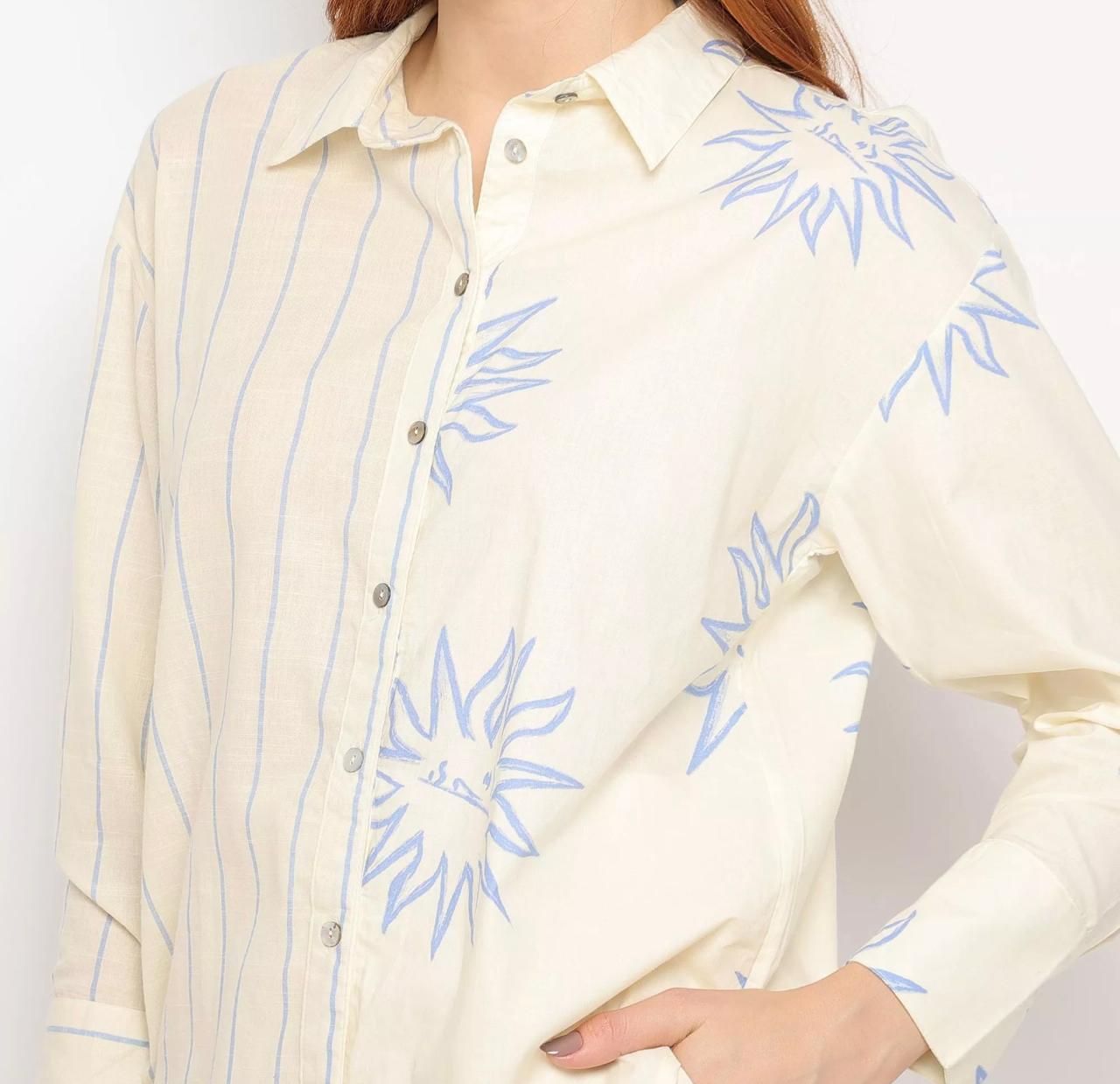 Camisa Sol Hering Feminino – Off White & Azul tam M