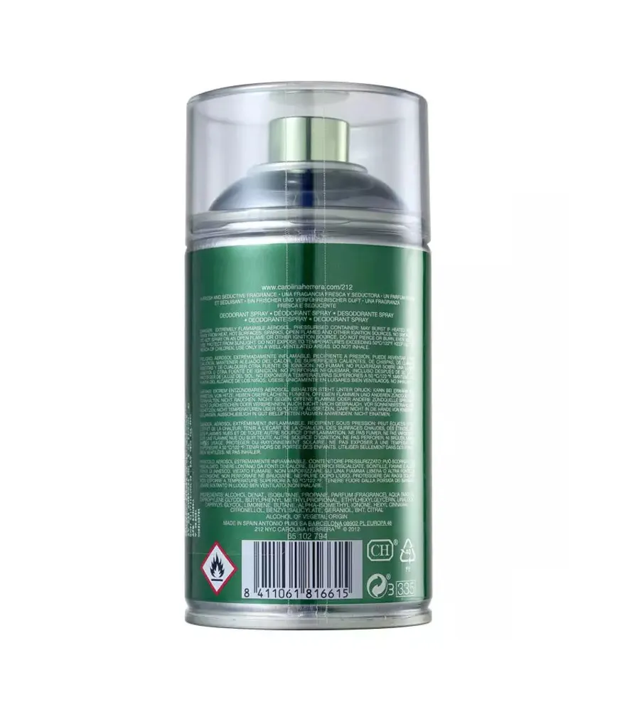 Perfume Feminino Corporal 212 NYC Seductive Body Spray de Carolina Herrera se destaca por proporcionar uma experiência nova e refrescante. Esse delicioso perfume corporal possui um design inovador e nasceu da perfeita simetria entre a juventude e o cosmopolitismo na arte das ruas de Nova York, porém com a elegância contida apenas nos frascos 212. O 212 NYC SeductiveBody Spray de Carolina Herrera disponível nas versões feminina e masculina possui um aroma fresco e intenso. Nas mulheres o efeito do perfume recai sob a pele com delicadeza e elegância, ao misturar elementos fascinantes como bergamota, mandarina e pétalas de grapefruit.