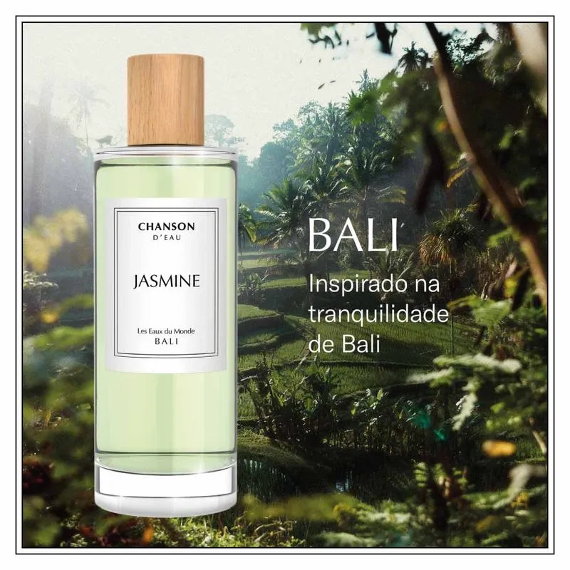 O perfume feminino Chanson d’Eau Jasmine Eau de Toilette nos convida a uma viagem pelo mundo, com fragrância inspirada na tranquilidade de Bali, onde cresce o requintado e luminoso Jasmim.