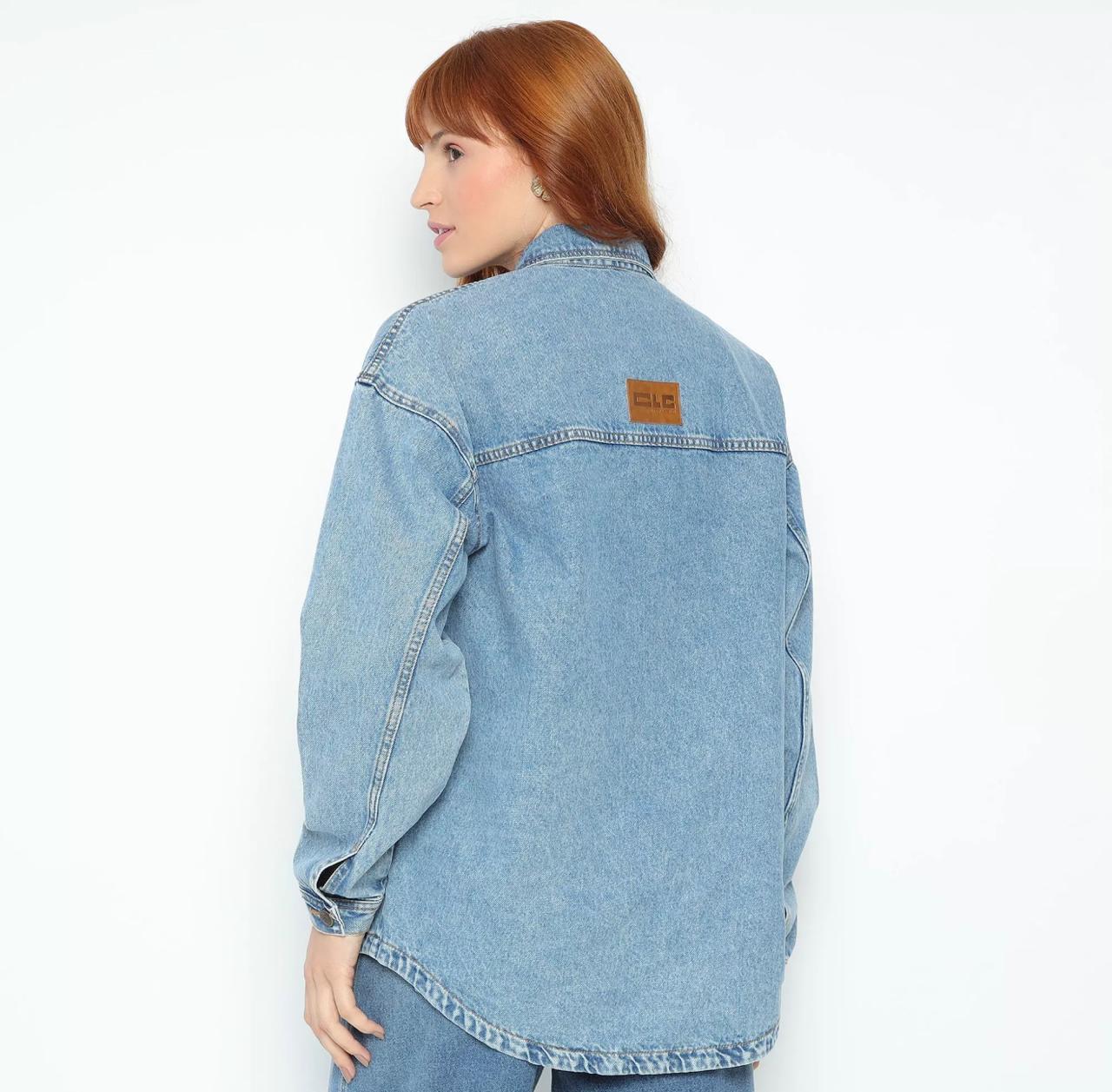 O modelo oversized com bolsos grandes traz um toque despojado e cool para qualquer produção. O jeans é um tecido clássico e versátil que proporciona conforto e durabilidade.