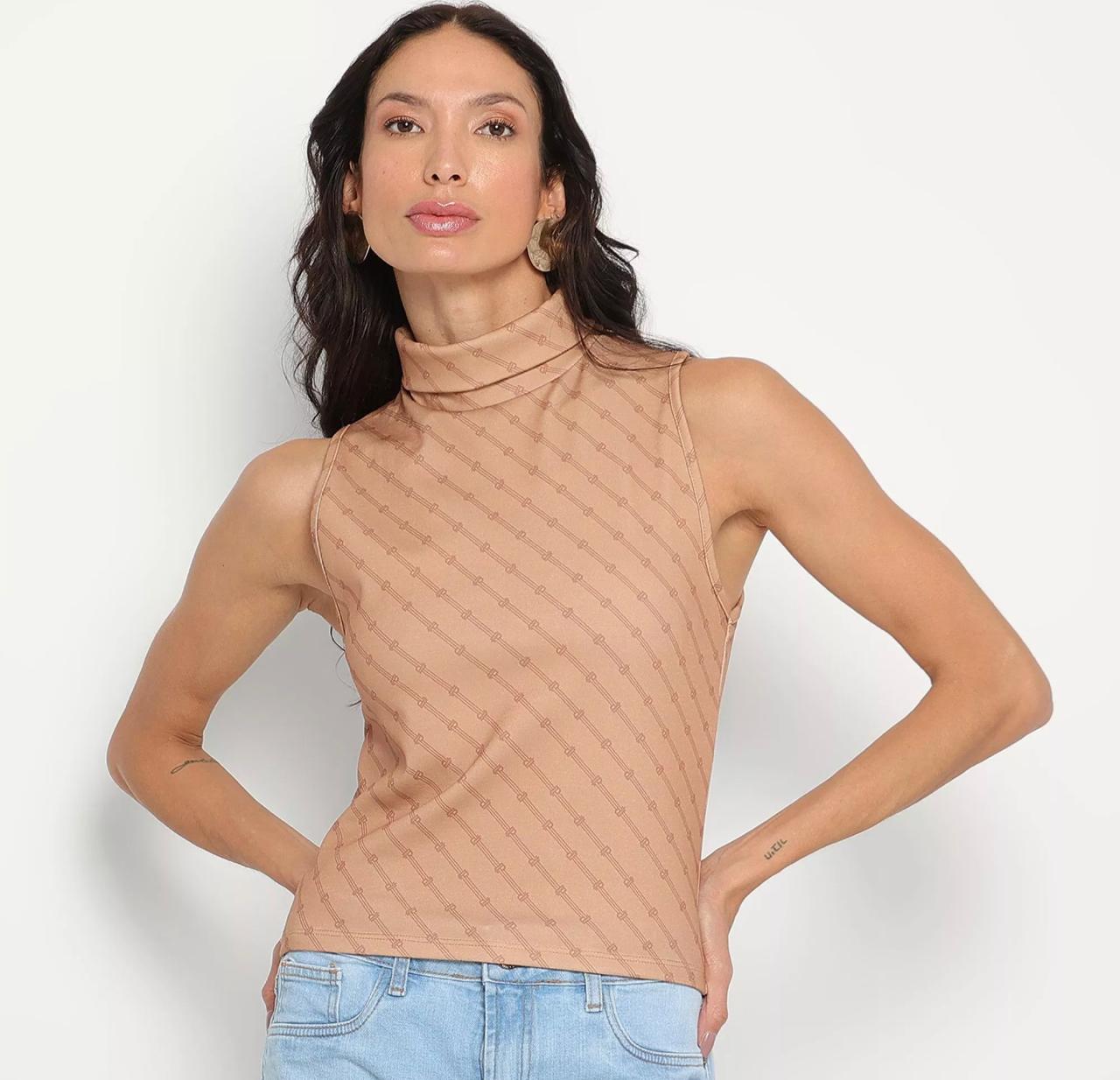 Regata nas cores marrom claro e marrom.