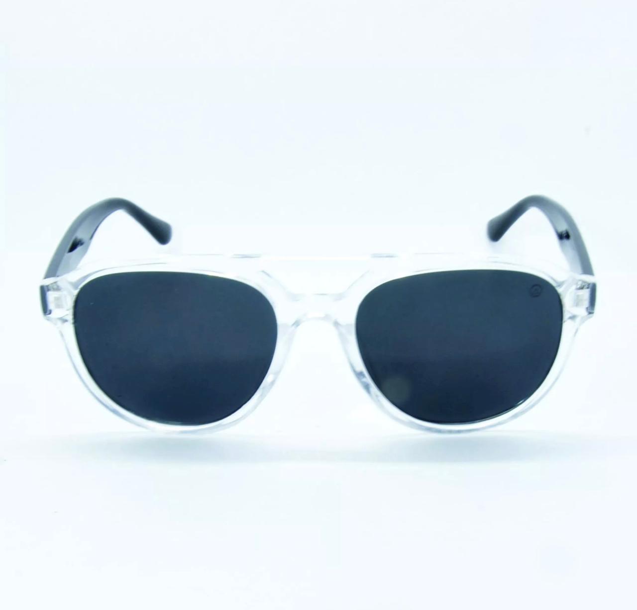 Óculos de sol incolor e na cor preta.