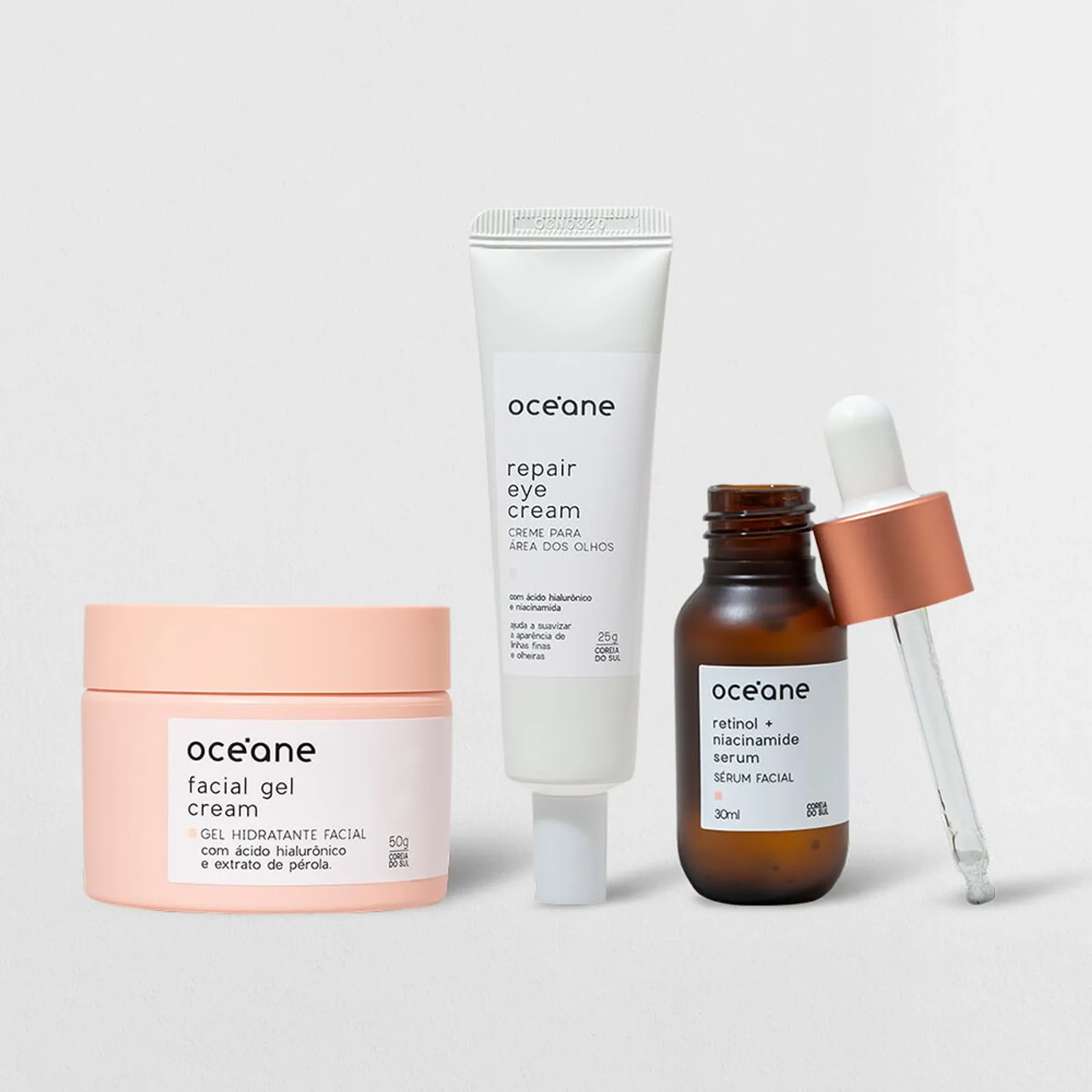 O Kit Pele Perfeita | Creme para Área dos Olhos + Gel hidratante + Sérum facial Retinol e Niacinamida contém: