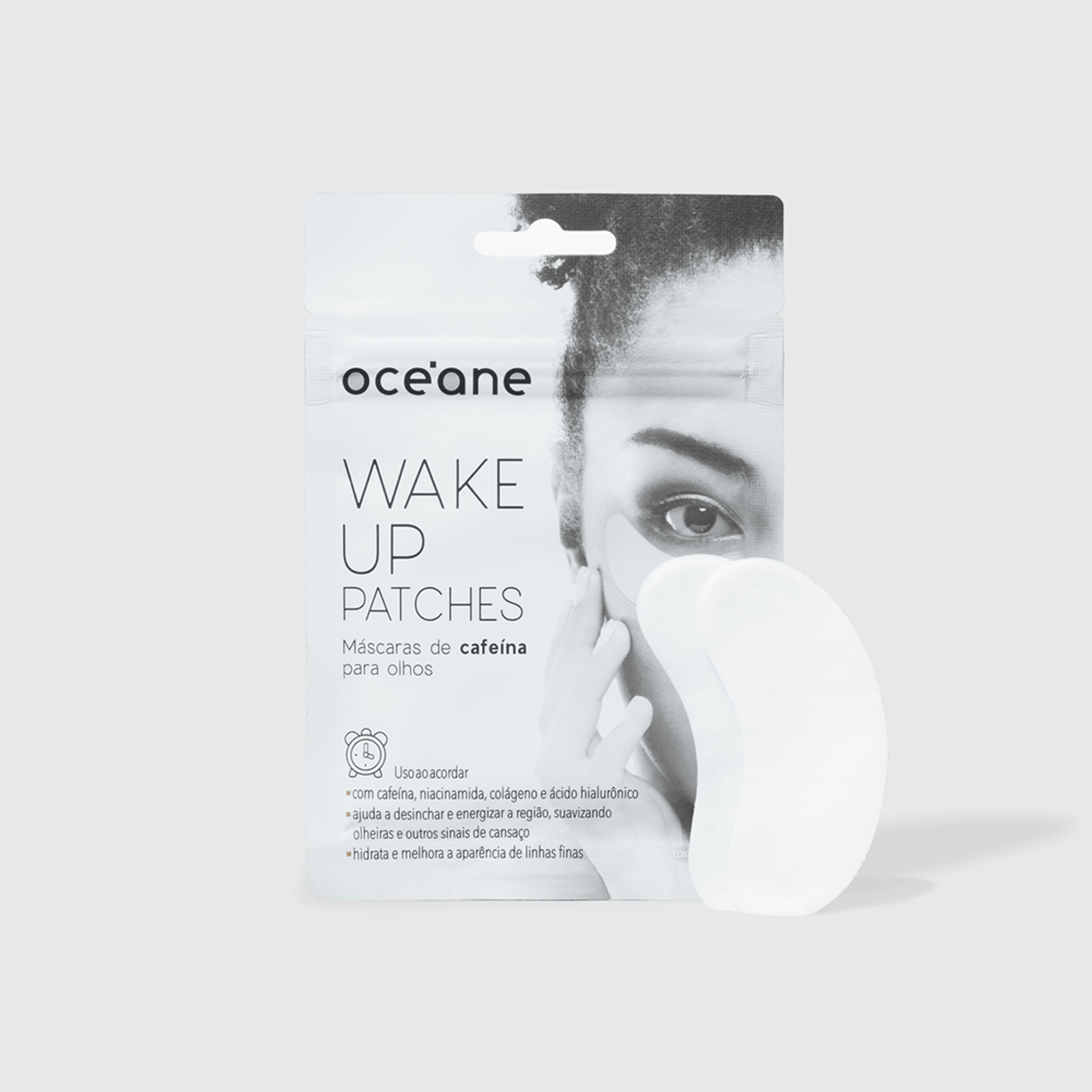 A Máscara de Cafeína Para Olhos Wake Up Patches possui cafeína, niacinamida, colágeno, ácido hialurônico e peptídeos, perfeita para usar pela manhã e desinchar e energizar a região dos olhos. Acordar plena e revigorada é tudo o que sonhamos. E como nem sempre isso é possível, a Océane ajuda a conquistar o ar revitalizado com a Máscara para olhos de cafeína!