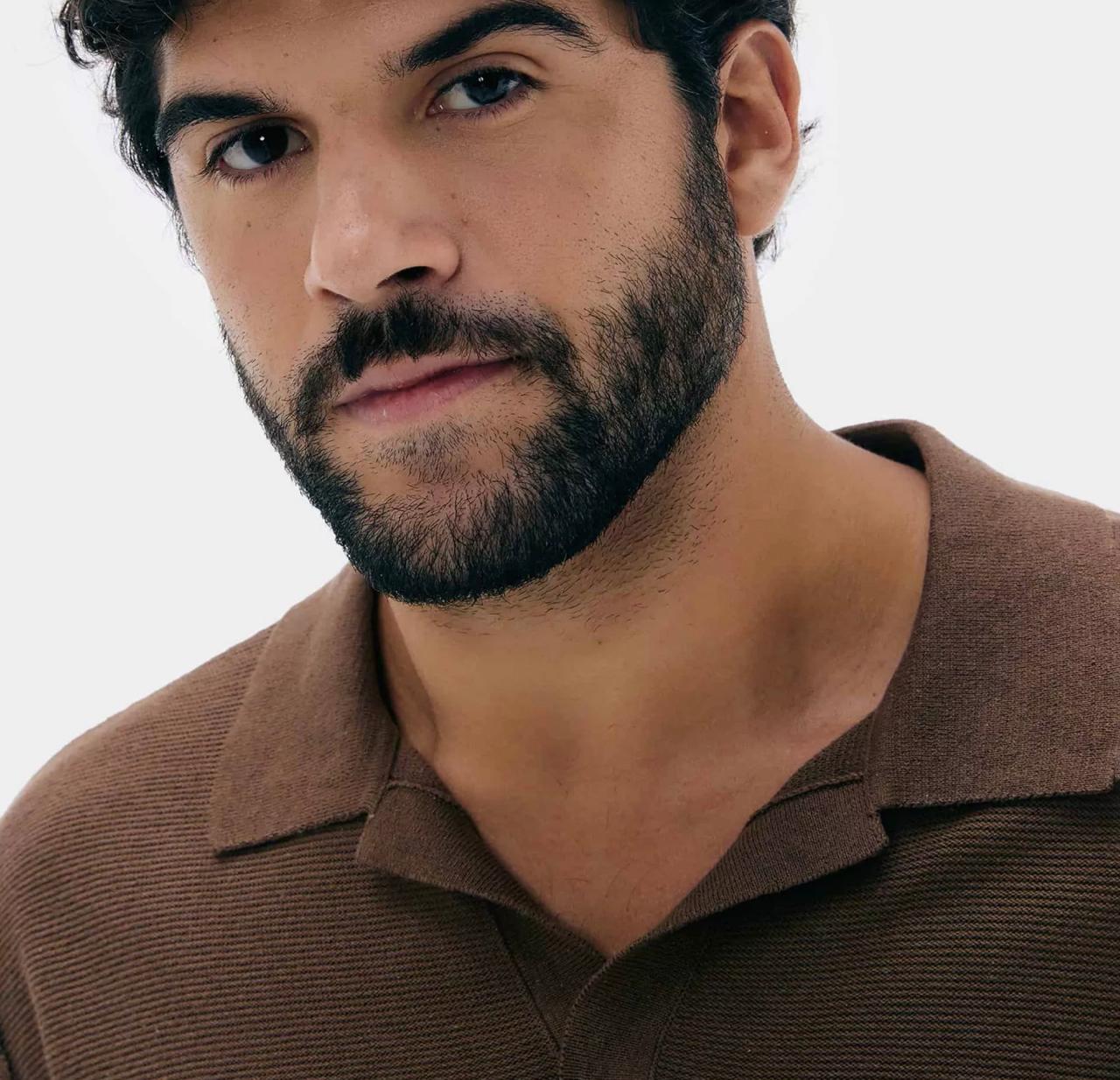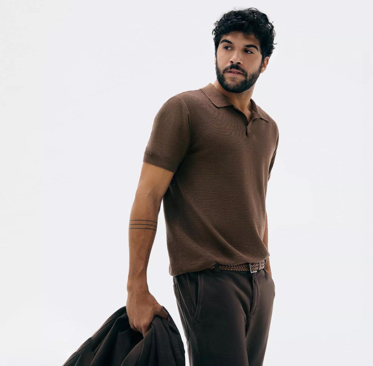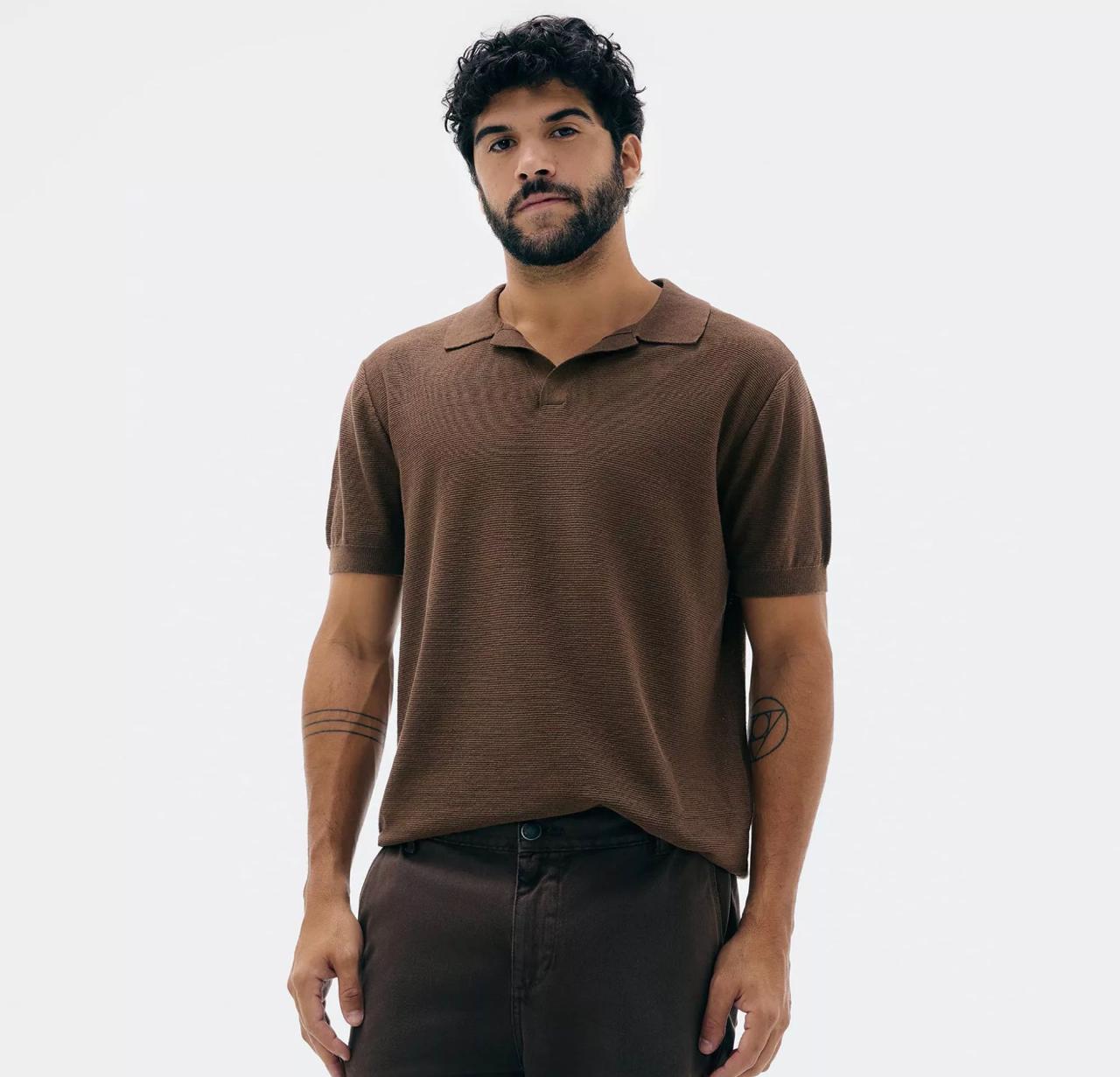 Polo na cor marrom escuro.