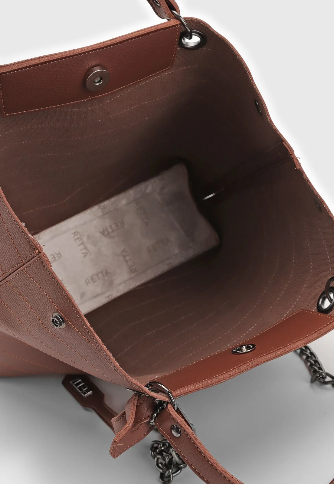 A bolsa saco Valentina pode ser usada de duas formas – conforme poderão ver nas fotos – ela saco toda aberta ou você fecha ela com botões de pressão na lateral fazendo com que ela fique mais fechadinha. E também pode ser usada no ombro, com a alça maior de corrente ou com a alça menor em seu antebraço. Um charme só!
