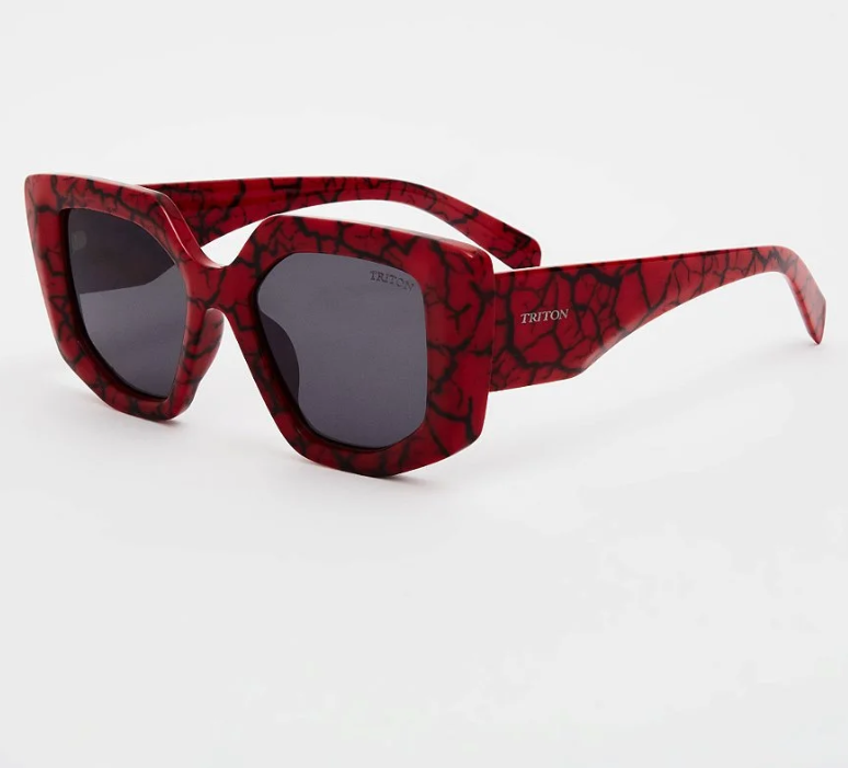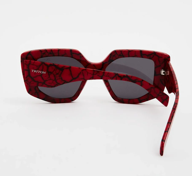 Óculos de sol Triton estilo clássico, formato quadrado na cor vermelha. Armação em acetato e lentes na cor fumê. As plaquetas são embutidas. As lentes possuem proteção 100% UVA e UVB, protegendo seus olhos contra os raios nocivos do sol e prevenindo o risco de doenças oculares.